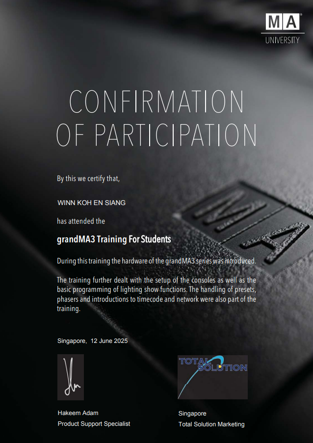 I attended a workshop that taught us the basics of how to use a grandMA3 lighting console